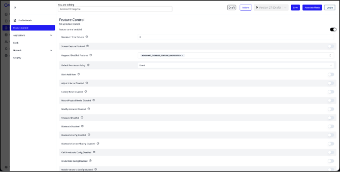 - Once associated, the feature control will be deployed on all devices in that fleet according to the profile settings.